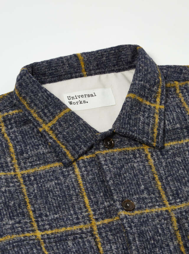 Universal Works L/S Utility Shirt In Navy Bari Fleece
