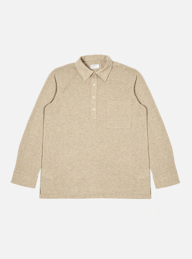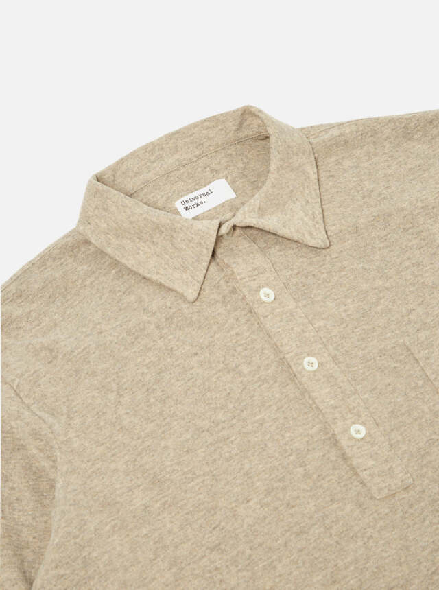 Universal Works Pullover L/S Shirt In Sand Recycled Wool Mix SJ