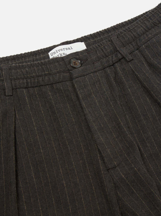 Universal Works Pleated Track Pant In Brown Italian Pinstripe