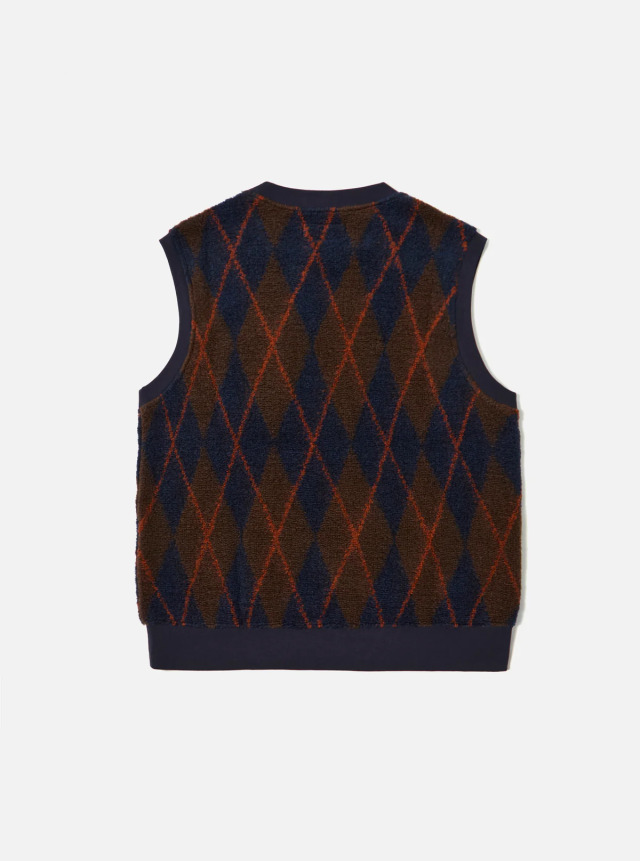 Brown/Navy Argyll Fleece Sleeveless Crew