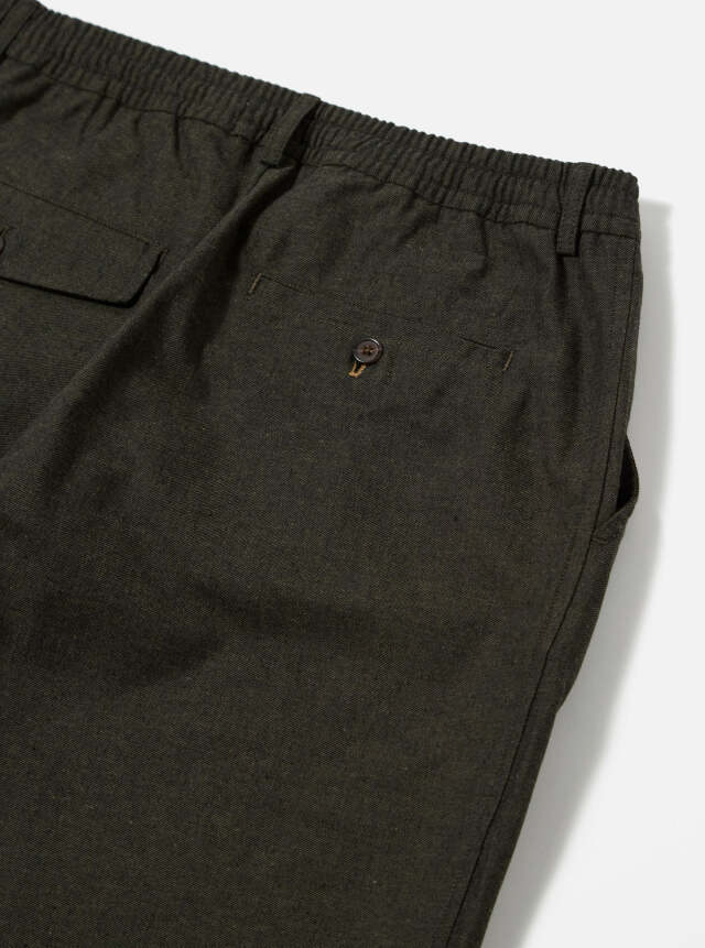 Universal Works.(ユニバーサルワークス)のベストセラー商品の一つ。ゆったりとしたシルエットで、裾に向かって細くなるテーパードパンツ。フロントにシングルプリーツを施し、ドローストリングウエストで完璧なフィット感を実現しました。
