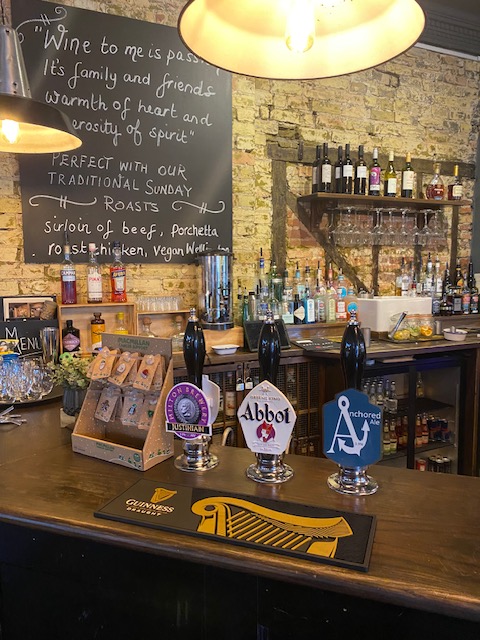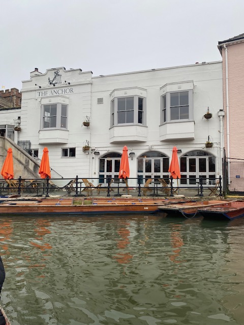 ケム川沿いに位置する「ザ・アンカー」は、歴史あるケンブリッジのパブ。水辺の絶景と、くつろげる温かい雰囲気が魅力です。テラスでパントボートを眺めながらドリンクを楽しむのも良いですし、室内の居心地の良い席でくつろぐもOK。リラックスするのに最適な場所です。市内中心部や大学から徒歩圏内という立地から、地元住民、学生、観光客に愛されているそうです。私は、Anchored AleというおそらくPubオリジナルであろう、エールビールをいただきました。店内の雰囲気を写真撮影していたところ、まさかのバーテンダーに声をかけられ、バックバーに入れてくれて、ちょっとだけエールビールのポンプを引くことができました。貴重な体験でした。